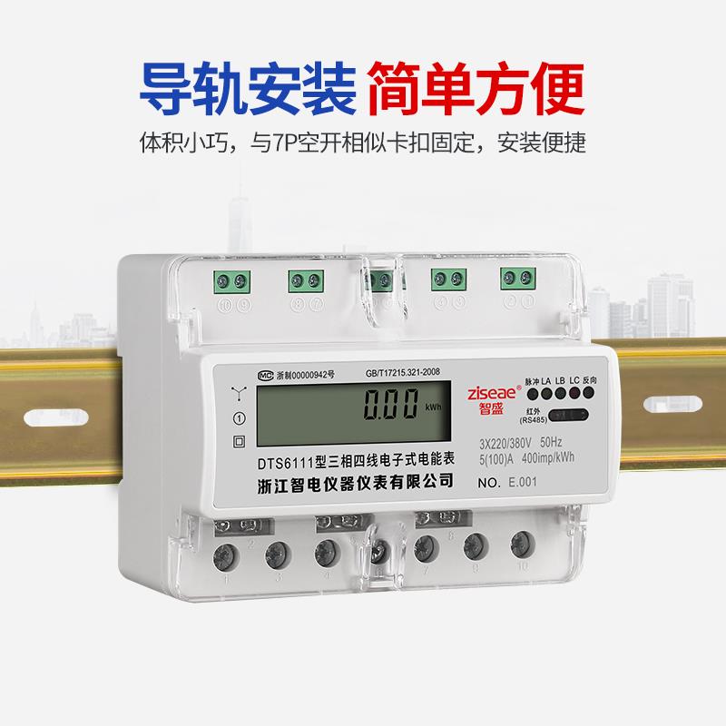 三相四线导轨式电能表小型轨道7P卡轨485通讯380v智能动力电度表 - 日瑞斋商城