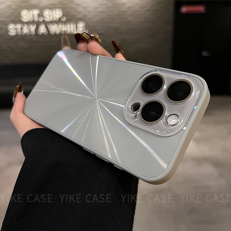 ins奶咖色极光CD纹iPhone15pro超好看16/17手机壳适用苹果13防摔14ProMax新款11高级12pro磨砂防指纹女保护套 - 个性淘壳工作室