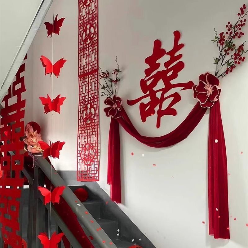 婚房布置楼道走廊客厅装饰结婚套装男方婚礼女方墙面婚庆用品喜字 - 365婚庆礼品店