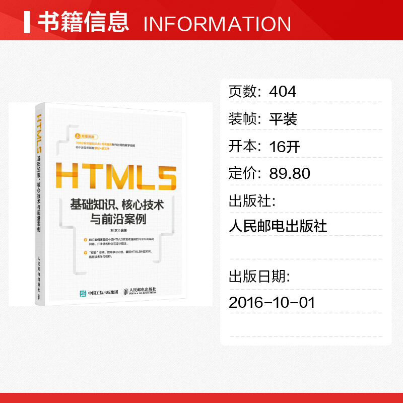 HTML5基础知识、核心技术与前沿案例 刘欢 编 网站设计/网页设计语言(新)专业科技 新华书店正版图书籍 人民邮电出版社 - 新华在线图书专营店