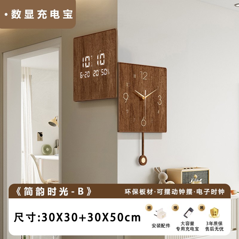 客厅双面转角挂钟k家用中古风钟表2025新款创意拐角电子时钟挂墙 - 云旺轩日用品的小店67