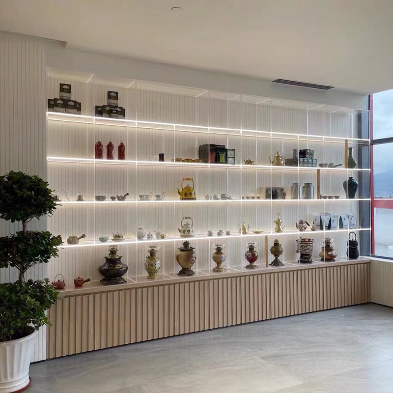 您的位置:他他商城  >   >  亚克力展架定制透明渐变色彩色商业展示柜服装陈列置物带门酒柜