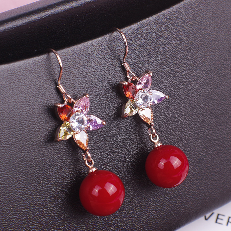 您的位置:他他商城  >  配饰  >  小花朵耳钉大红色梅花瓣韩版气质猫眼石耳坠红珍珠2023新潮耳环