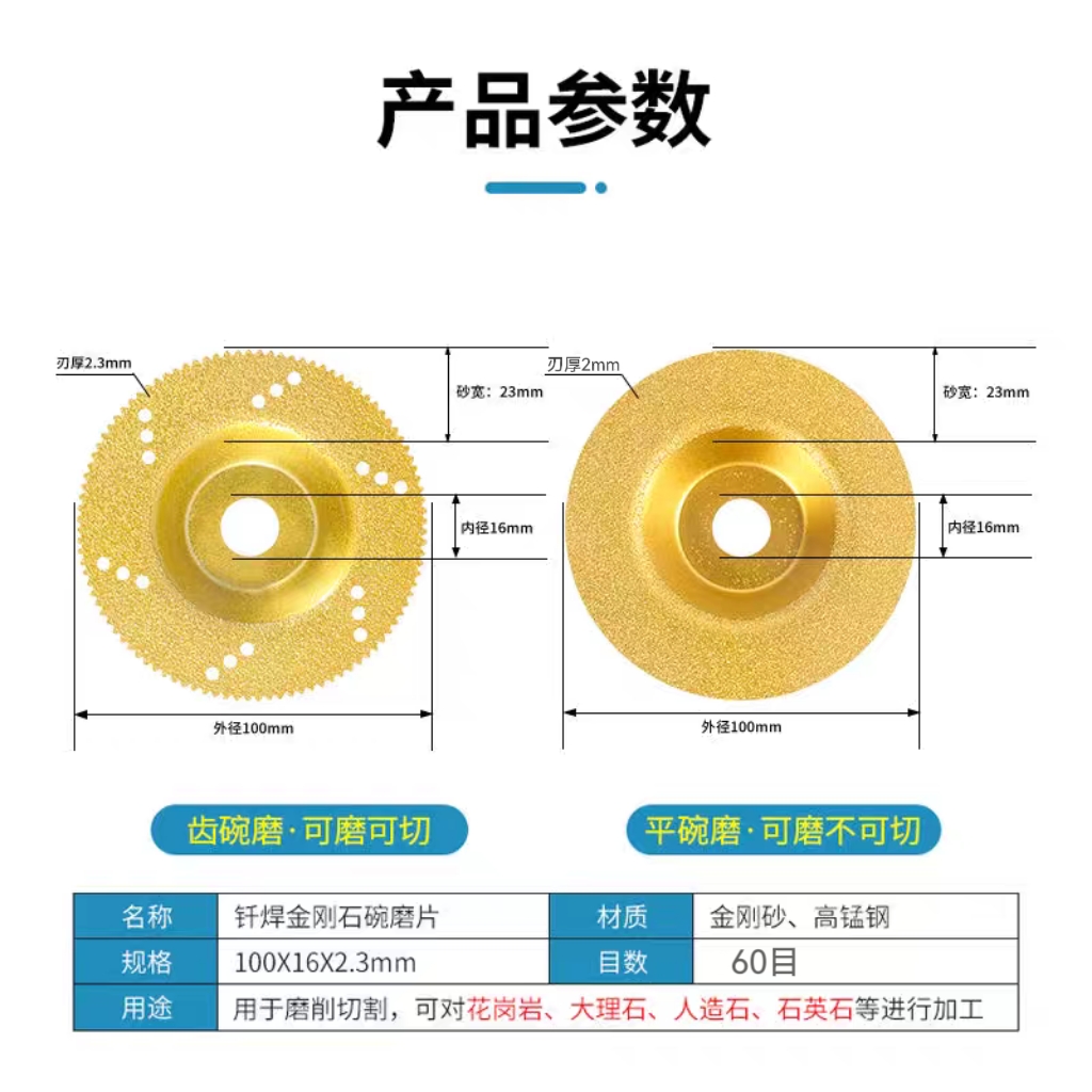 您的位置:他他商城  >   >  金刚石碗磨片瓷砖石材岩板修边倒角神器切割打磨锯片角磨机磨盘