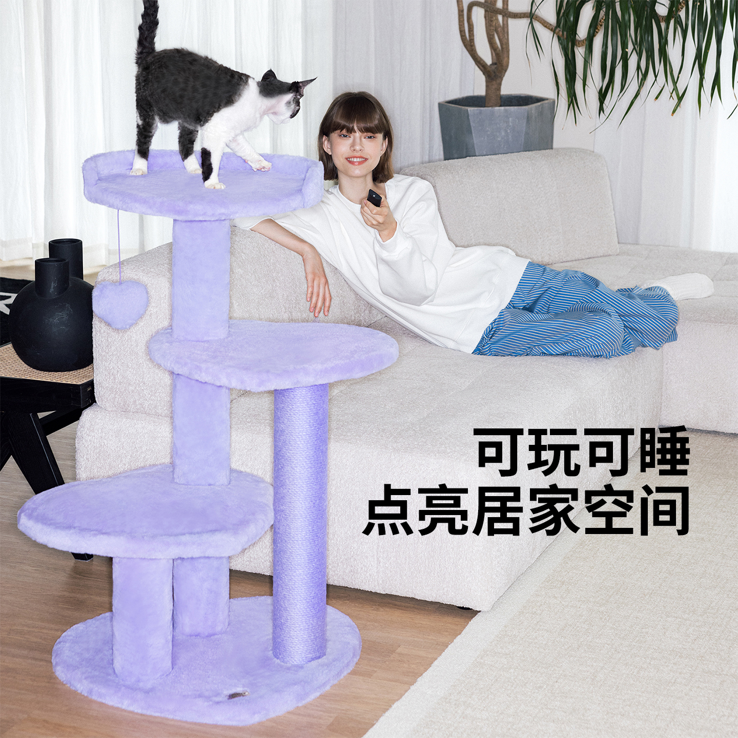 未卡心动紫/粉猫爬架猫抓板猫树一体通天柱大型猫架子麻绳猫玩具