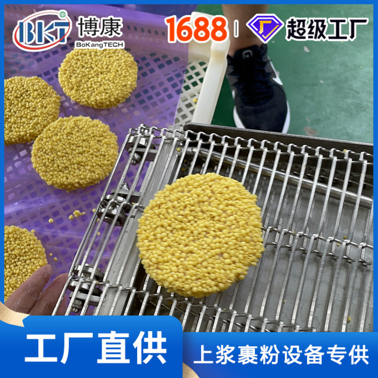 您的位置:他他商城  >   >  博康全自动汉堡肉饼生线 麦乐鸡块成型上浆上面包屑机 肉饼成型机