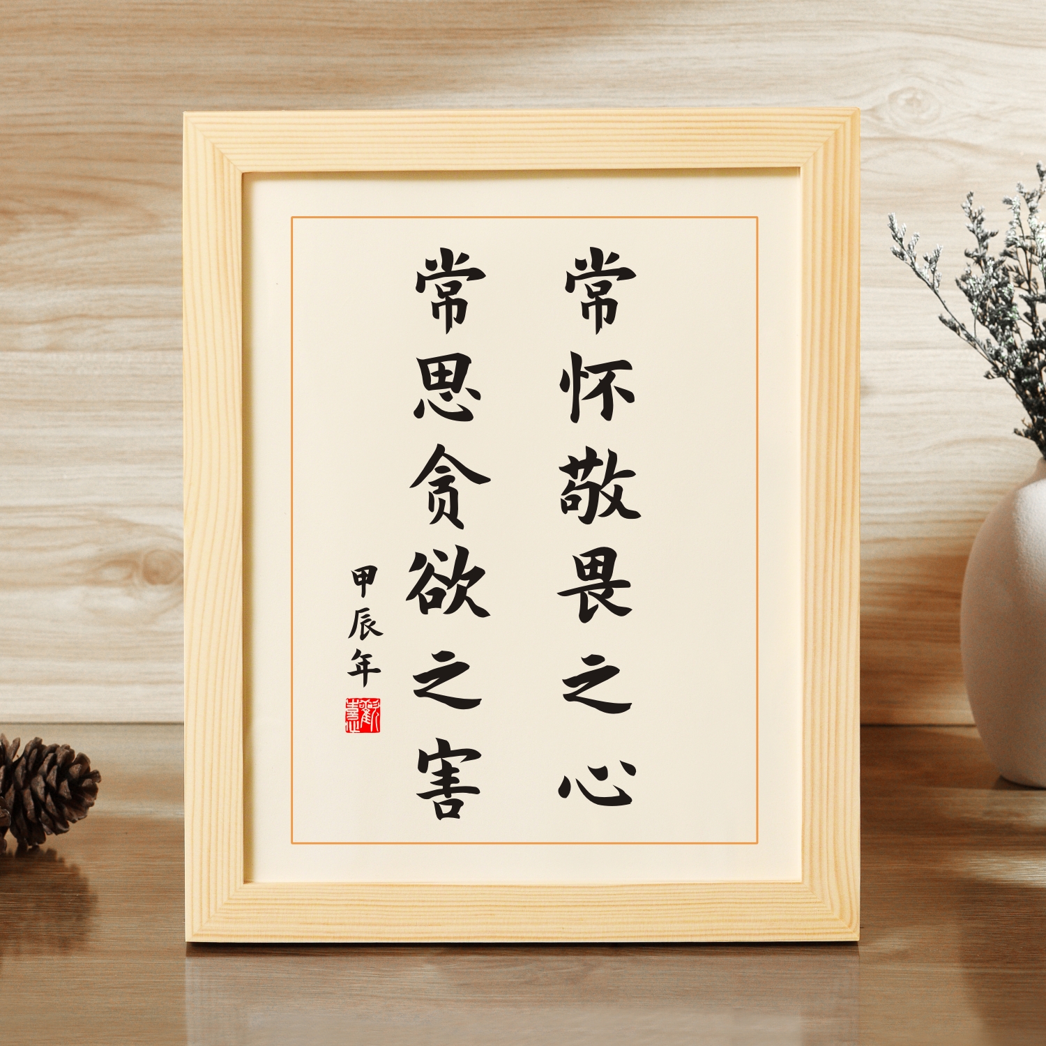 常怀敬畏之心常思贪欲之害励志书法办公室书房书桌摆台摆件座右铭 - 励志书法摆台
