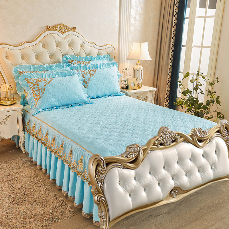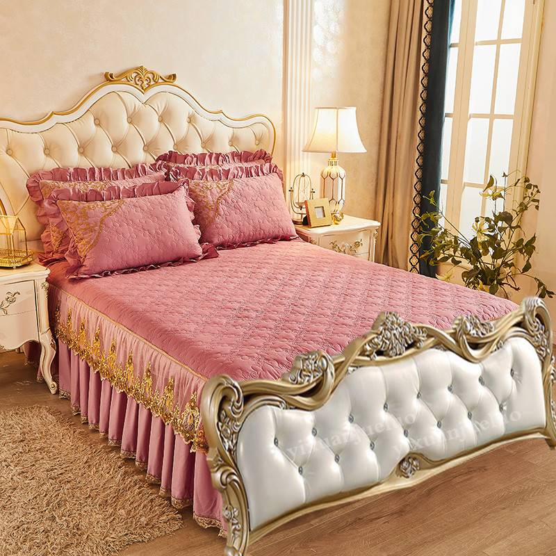 欧式全棉无床尾蕾丝o床裙夹棉加厚单件床罩两侧花边床单床套 - tb945072456883