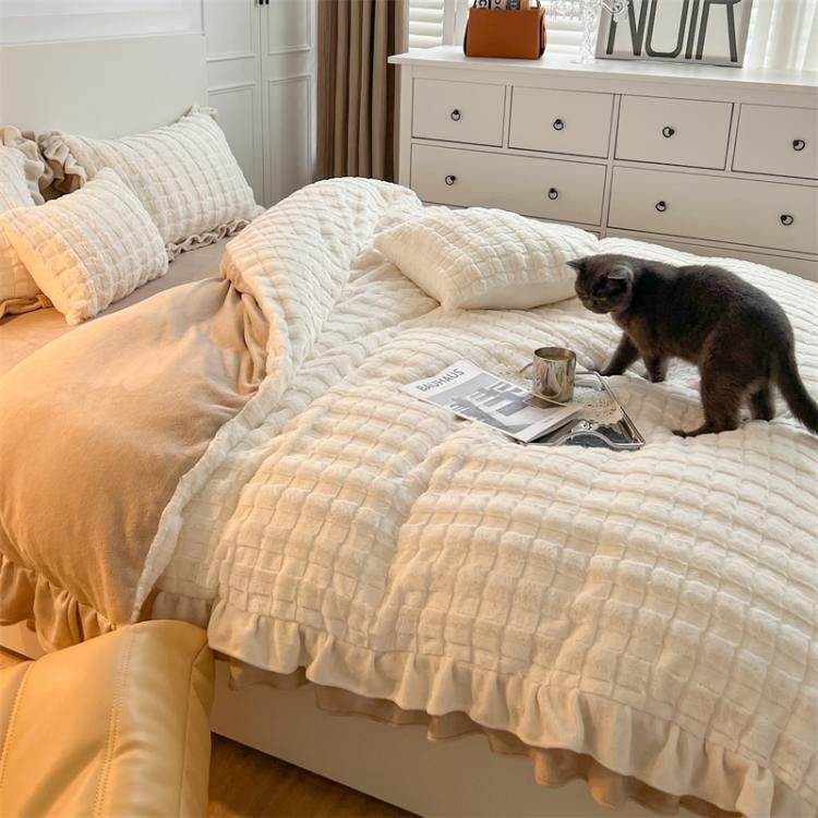撸猫感~獭兔毛牛奶绒四件套冬季珊瑚绒加厚双面绒公主风床上用品4 - 爱依家居生活馆