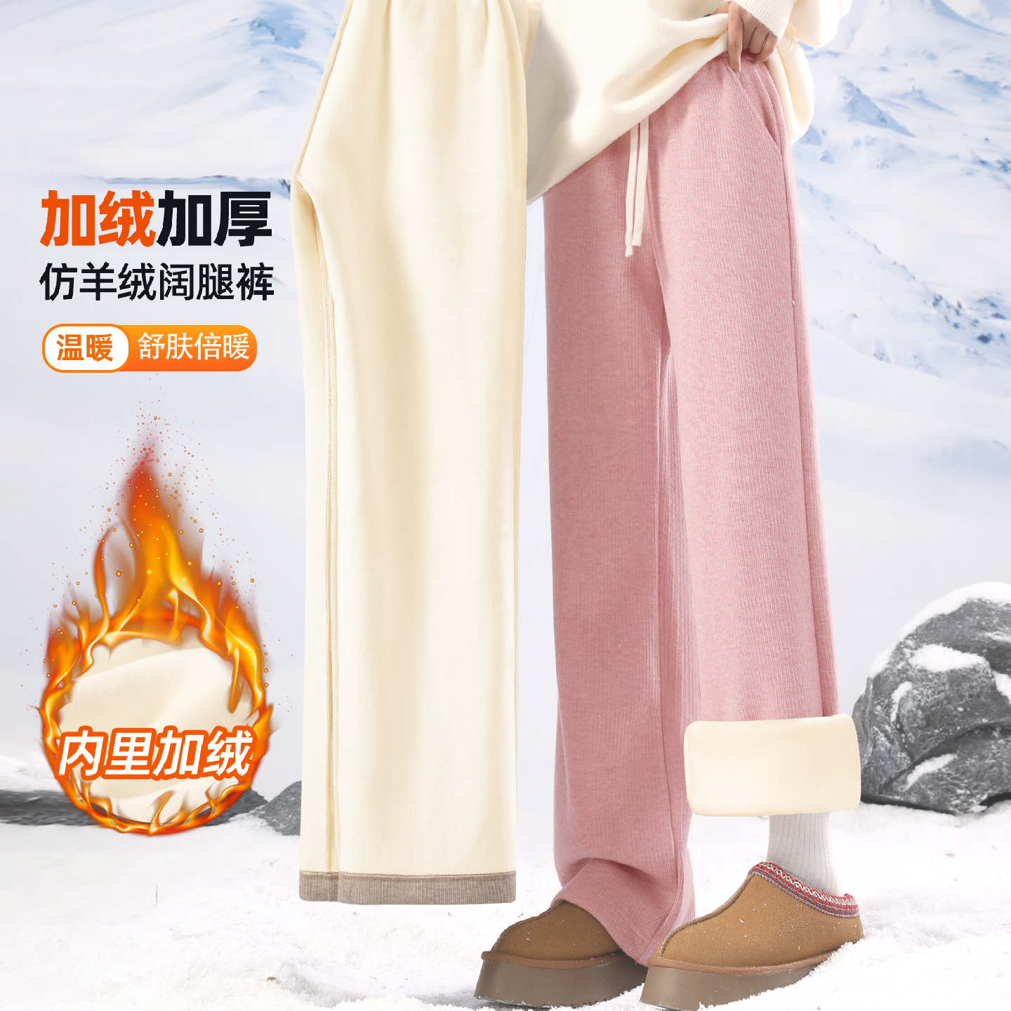 雪中飞加绒裤子女冬季加厚2025新款休闲长裤学生保暖粉色阔腿裤PC - 雪中飞官方旗舰店