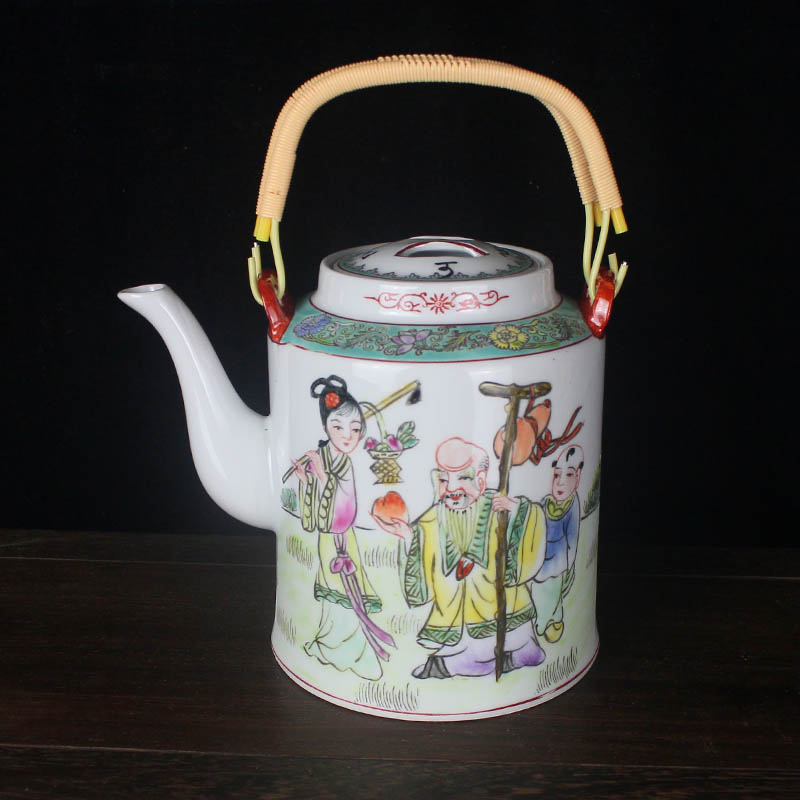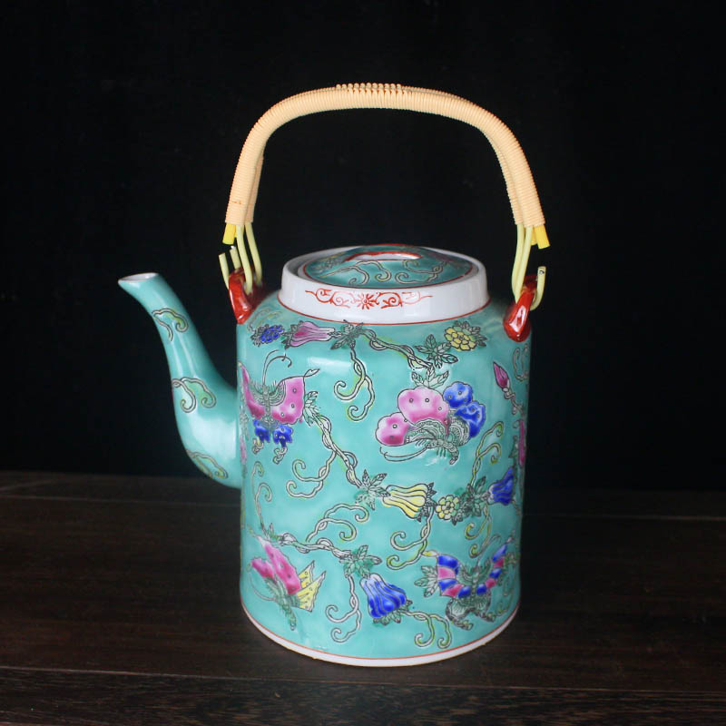 景德镇厂货万花瓷器茶壶万寿无疆收藏中式手工绘画宫廷风提梁水壶 - 美语严选店