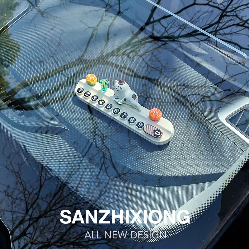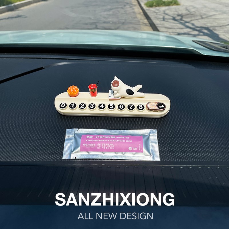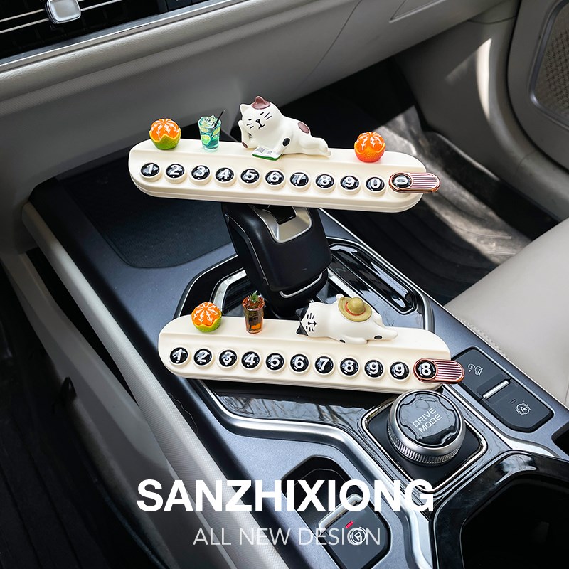 临时停车号码牌创意懒猫车载挪车电话牌汽车移车停靠留号器车摆件 - 浩烟渺波商城