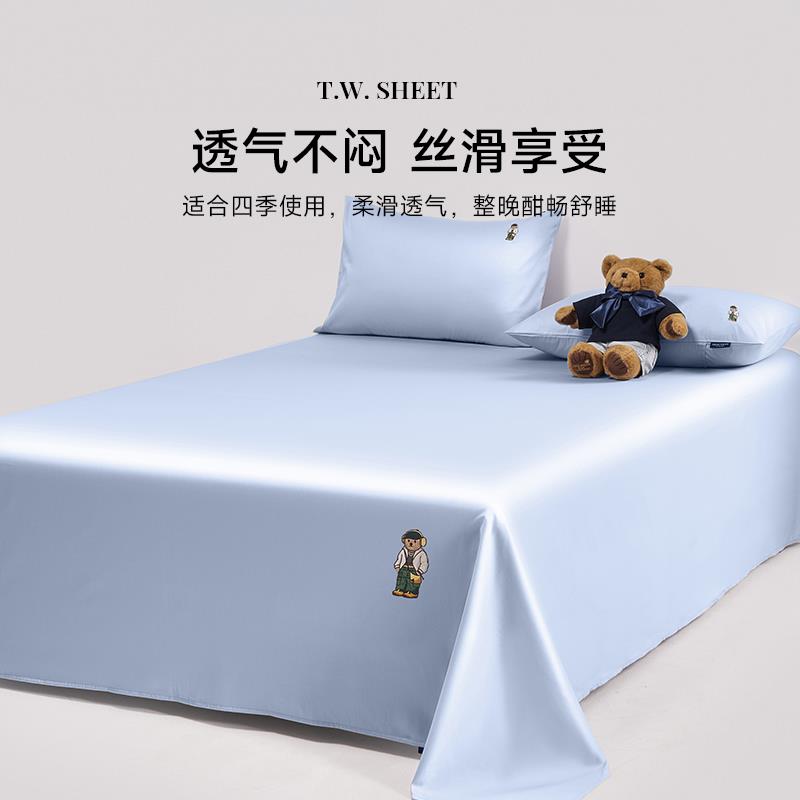 TeenieWeenie小熊全棉绣花床单单件高级感贡缎长绒棉纯棉加厚被单 - 延奥百货官营店