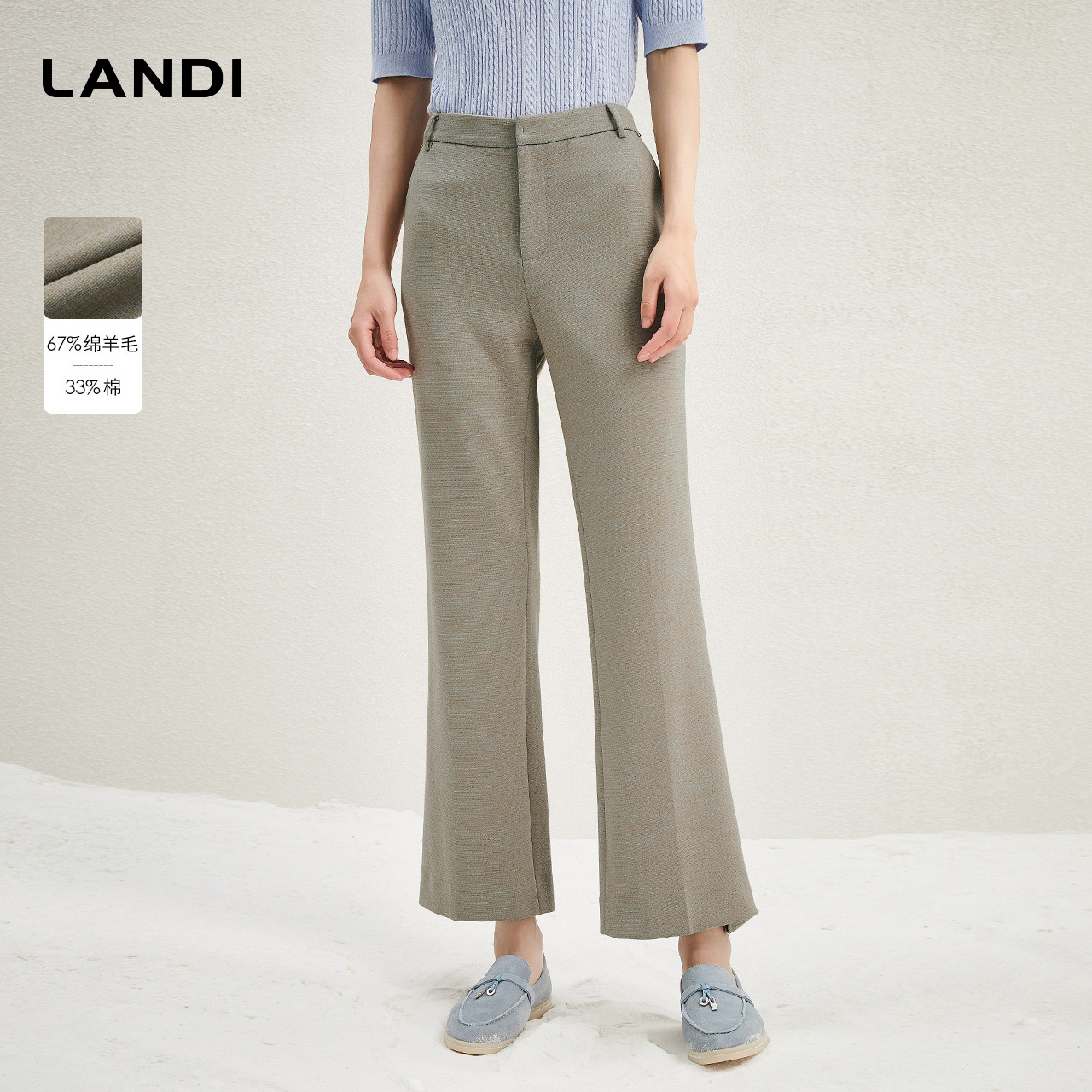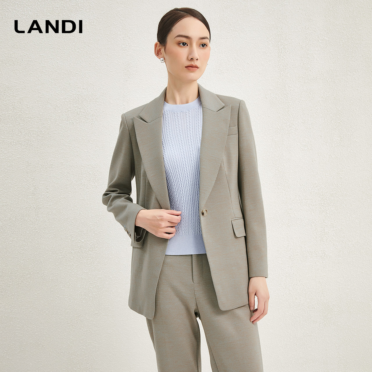 LANDI高级感灰绿色羊毛修身西服外套女套装微喇西装裤冬新品 - landi服饰工厂店
