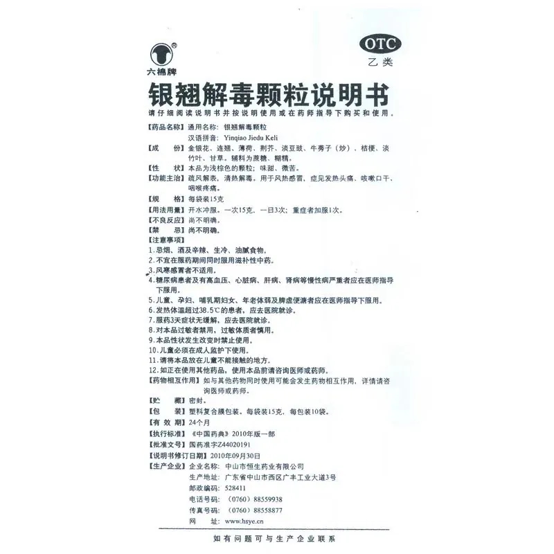 正品】六棉牌银翘解毒颗粒10袋风热感冒发热头痛咳嗽口干咽喉疼痛 - 弘毅药品专营店