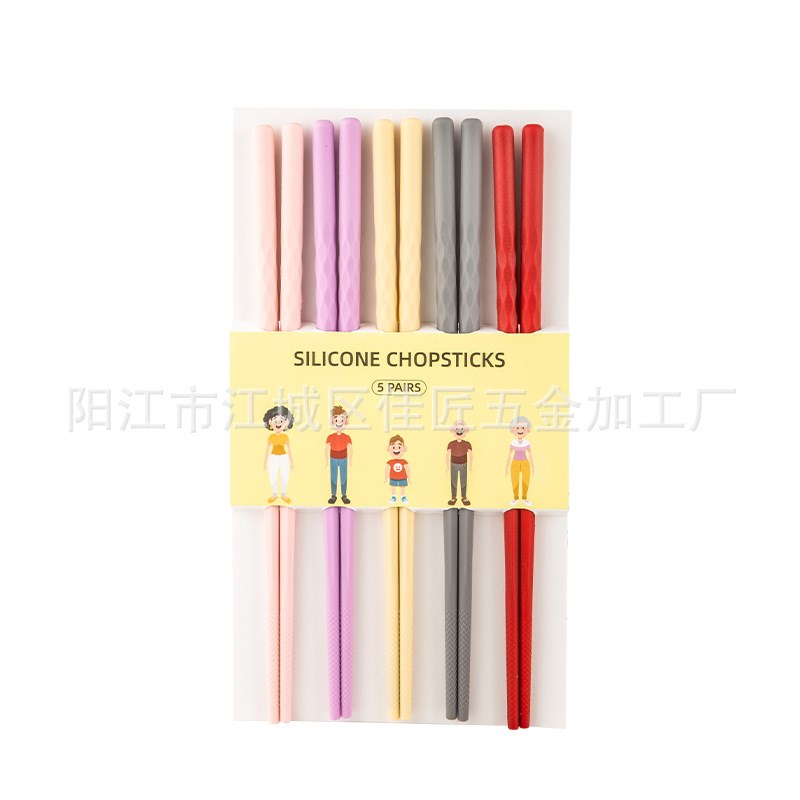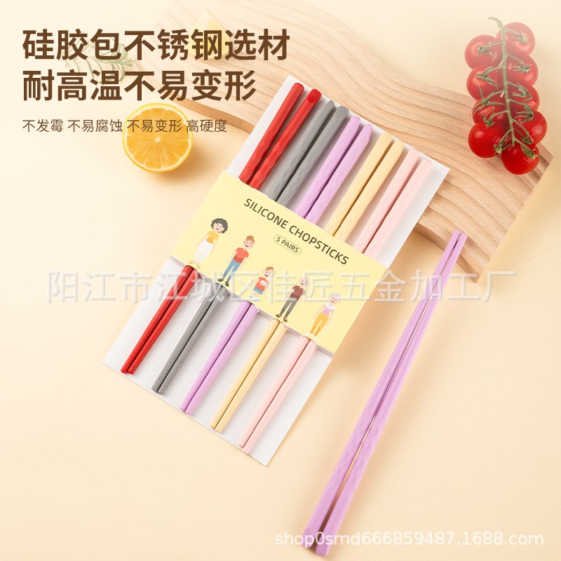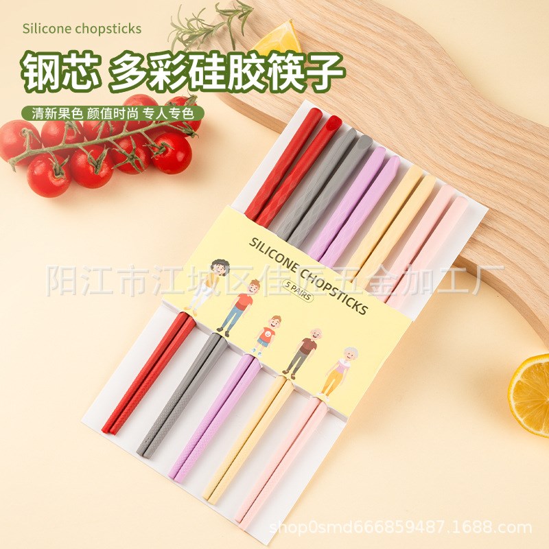 现货彩色家用硅胶筷子套装 耐高温钢芯防M霉家庭餐具防滑易夹筷子