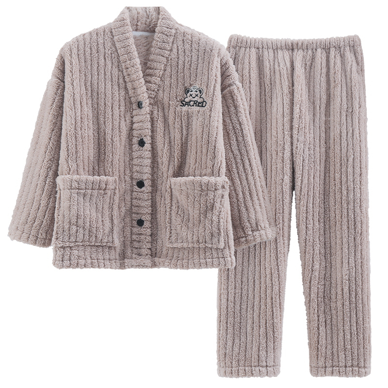 秋冬季法兰绒开衫睡衣套装珊瑚绒女加绒加厚家居服保暖和服可外穿 - 依尚品缘睡衣
