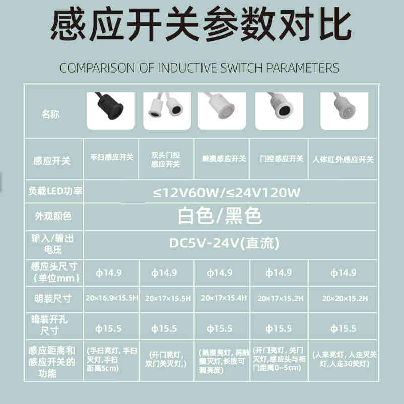 您的位置:他他商城  >  电器  >  DC12V24V橱柜衣柜灯感应开关红外线人体触摸LED手扫门控明装感应