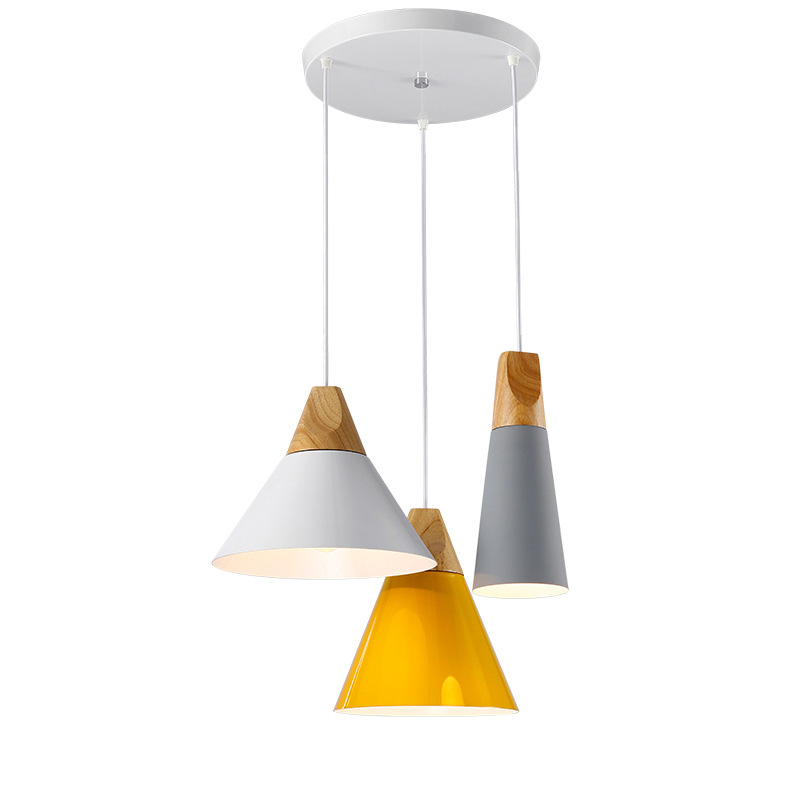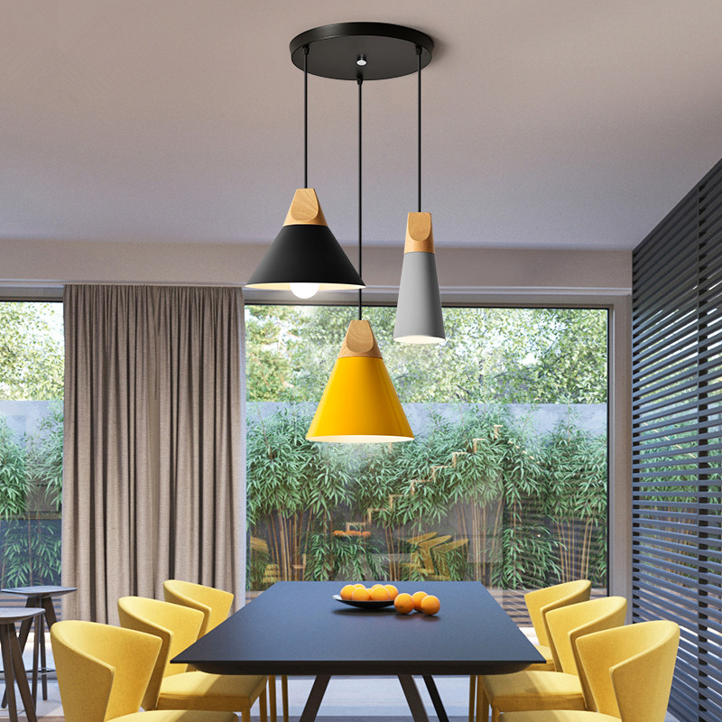 现代简约餐吊灯 实木铝材创意彩色饭店咖啡厅酒吧台单三3头吊灯 - 天河果蔬铺