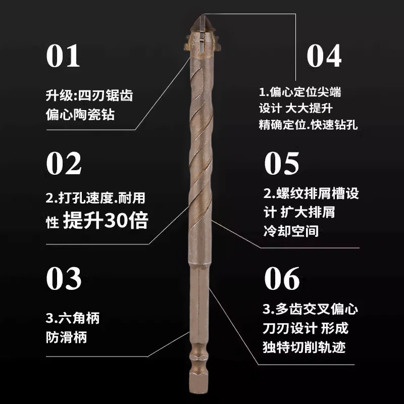 特快四刃锯齿偏心钻头瓷砖打孔混凝土超硬专用电钻高硬度干打霸王 - 望亲满意家居百货