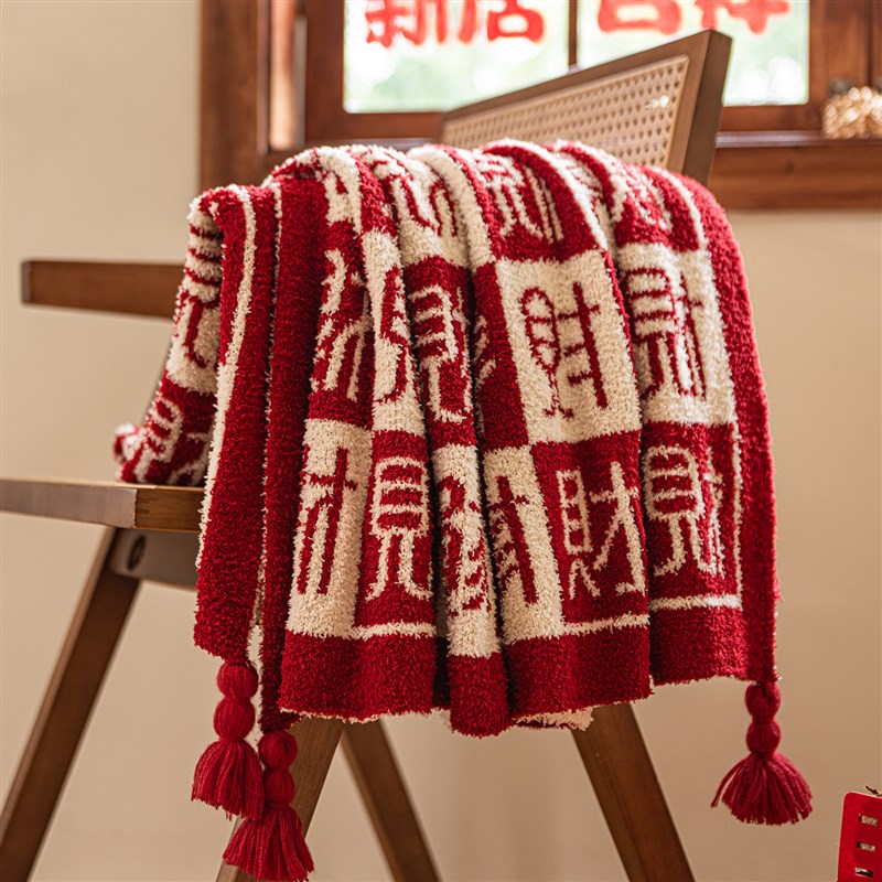 半边绒发财毛毯乔迁开 业生日礼物午睡I毯沙发盖毯文创办公室 - 意玺苑日用品的小店75