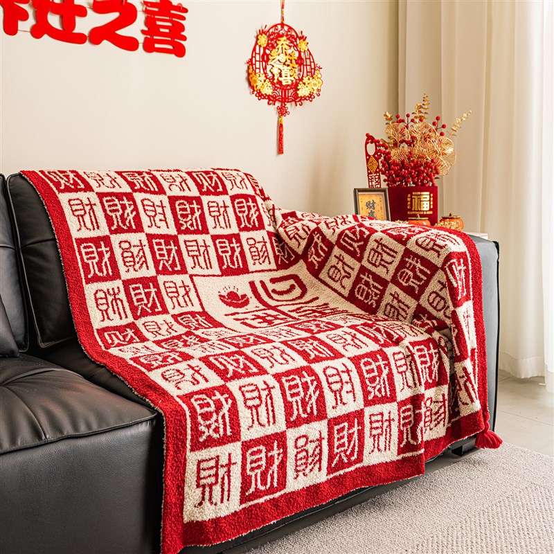 半边绒发财毛毯乔迁开 业生日礼物午睡I毯沙发盖毯文创办公室