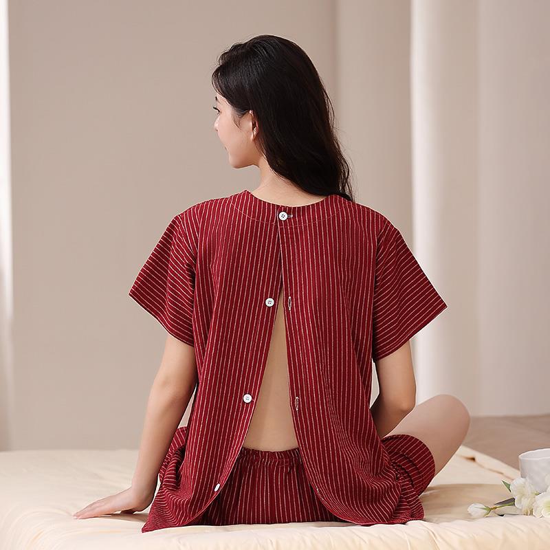 洗浴汗蒸服圆领艾灸服女纯棉前后开衫中医养生馆理疗按摩疗开扣头 - 宁香辉旗舰店