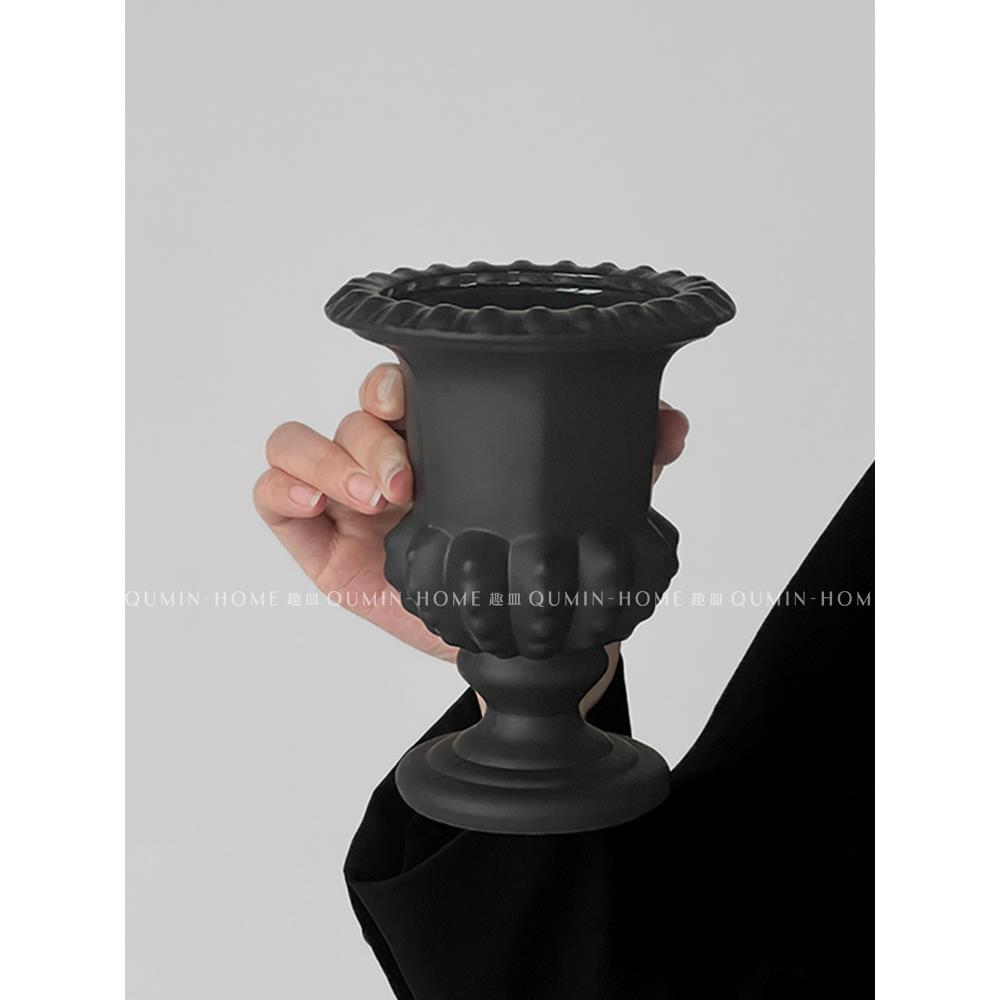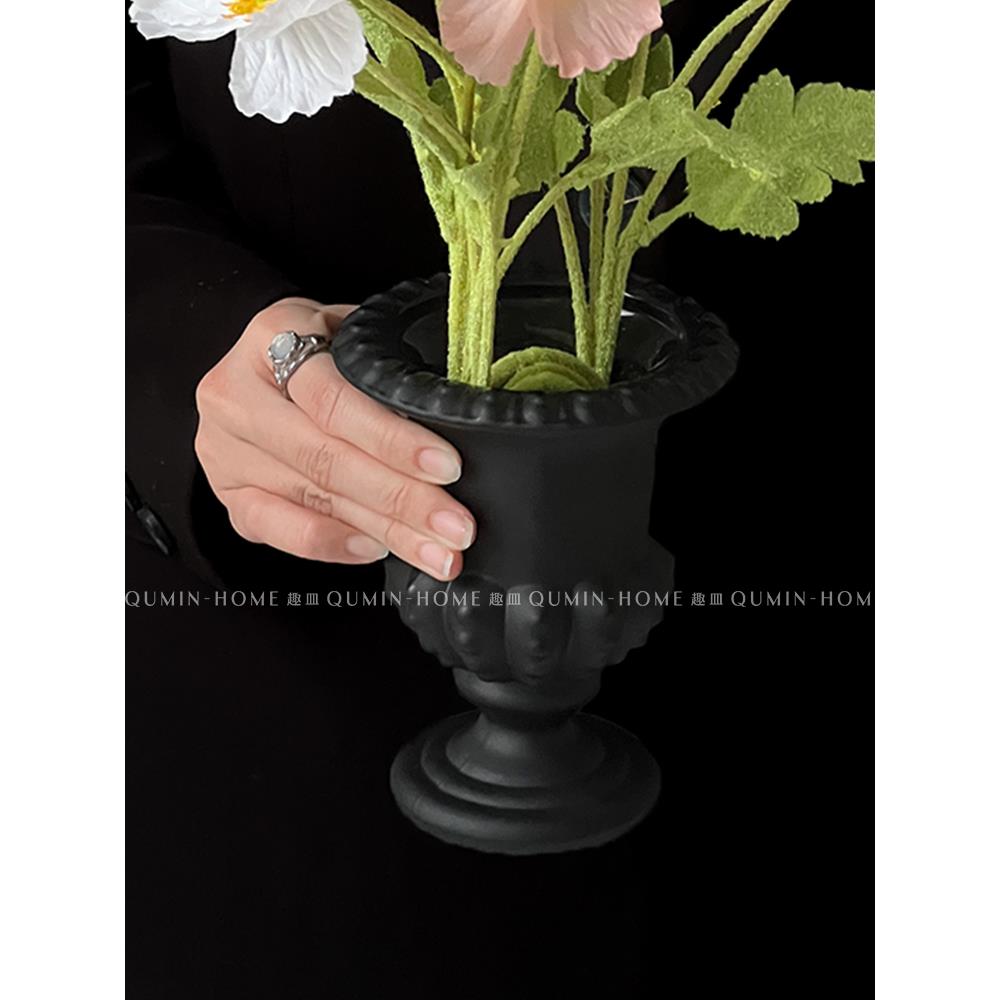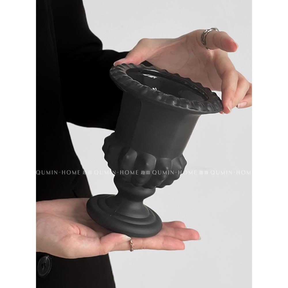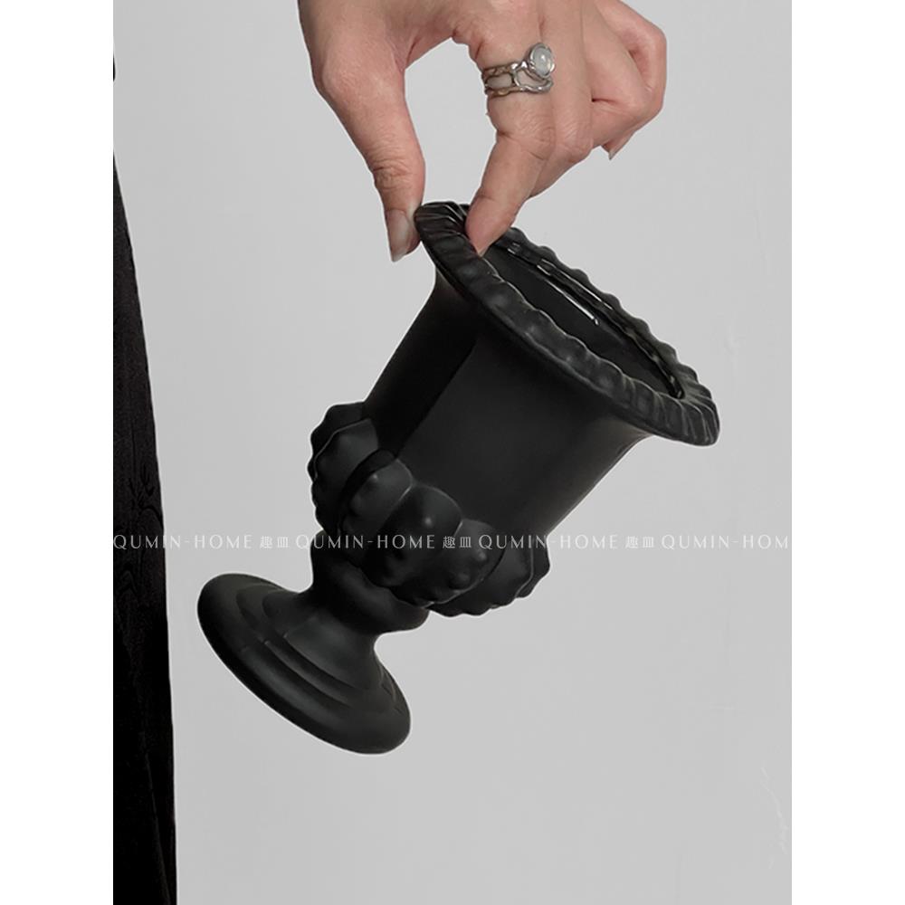 法式覆古黑色高脚玻璃花瓶客厅阳台创意个性桌面摆设高级感花瓶 - 上下铺的兄弟企业店