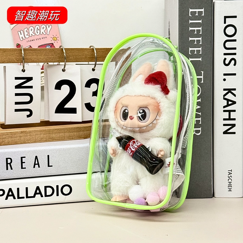 拉布布小米兰保护套labubu米兰时装周毛绒挂件娃包透明溜娃收纳包