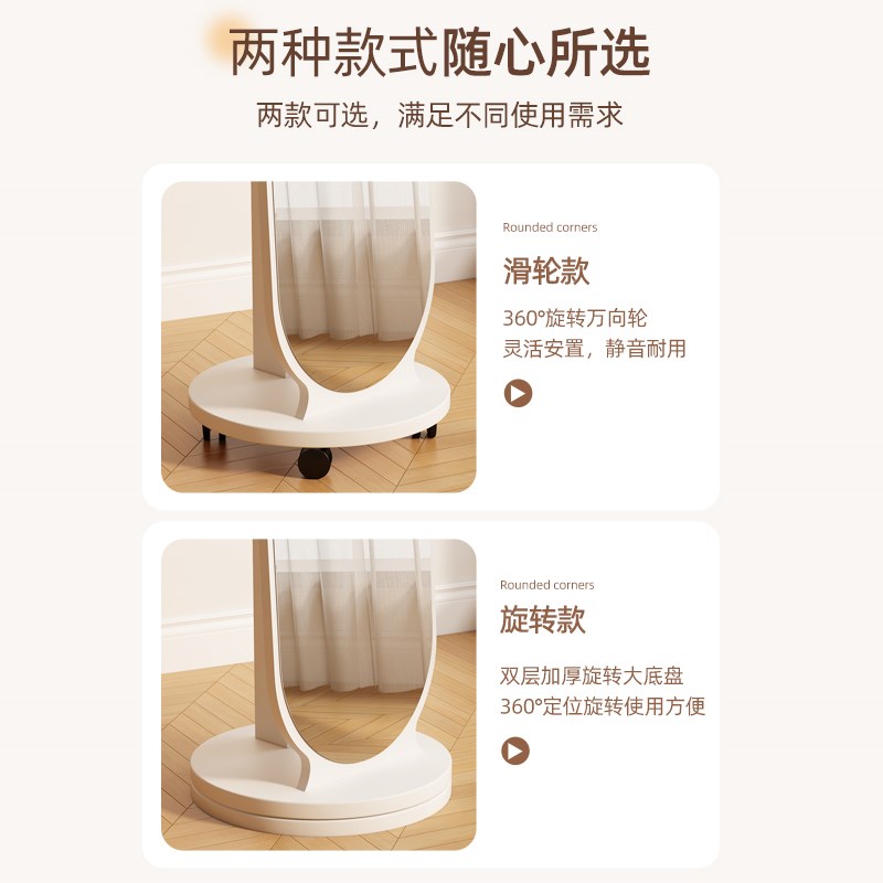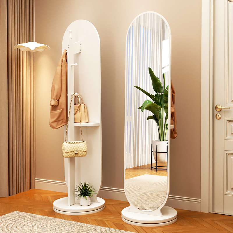 您的位置:他他商城  >   >  旋转全身镜子带置物挂衣架一体设计感可移动角落小户型穿衣落地镜