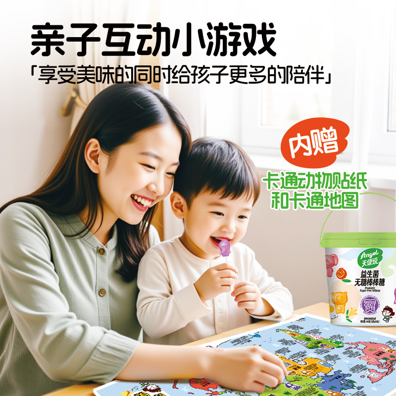 天使说无糖棒棒糖水果味无添加蔗糖益生菌叶黄素卡通糖果儿童零食 - 天使说旗舰店