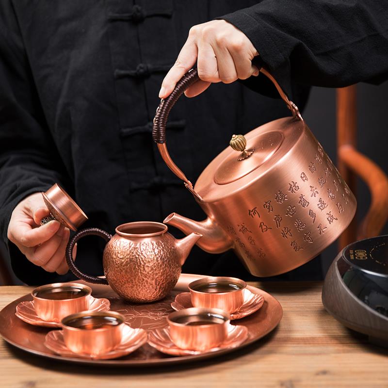 铸山堂纯紫铜铜壶大容量烧水壶沏茶壶手工养生黑晶炉家用茶具煮茶 - 四尊百货官营店