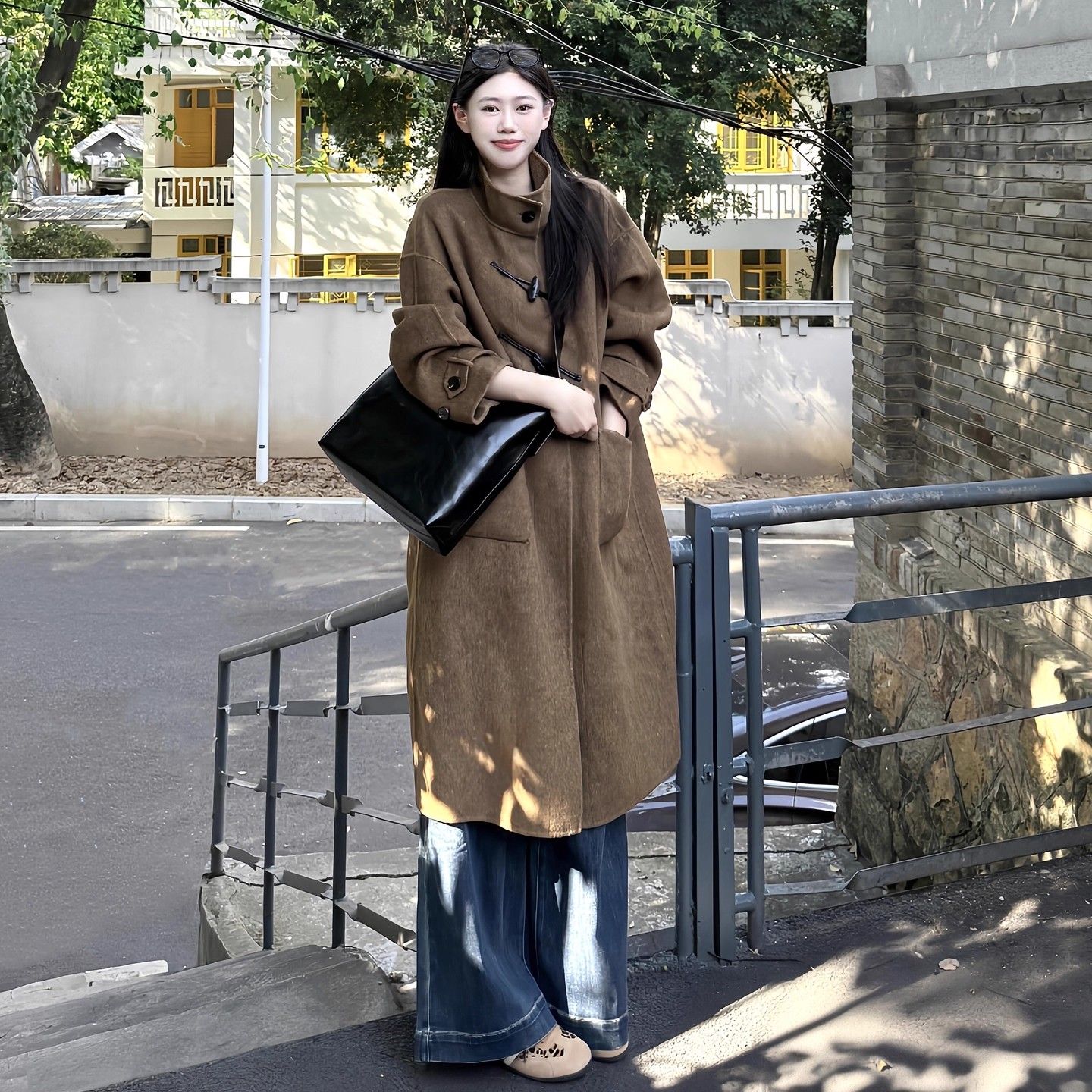 韩系温柔复古风中长款毛呢外套女秋冬季时尚百搭牛角扣设计感上衣 - 维拉风尚Vera Chic