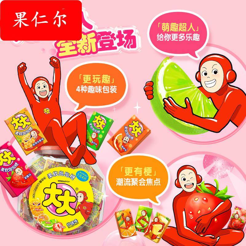 大大泡泡糖桶装什锦味口香糖约150片大大卷童年怀旧网红零食糖果 - 果仁尔旗舰店