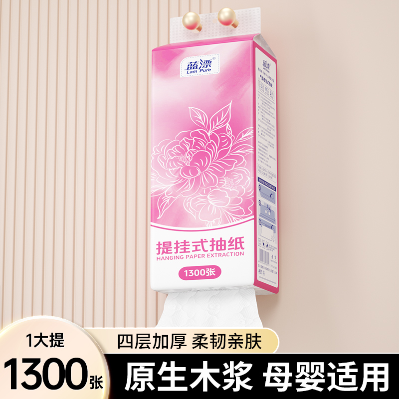 66抽4层原生木浆抽纸亲肤柔软蓝漂抽纸擦手家用母婴实惠装面巾纸 - 强哥家居店