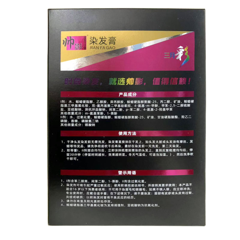 您的位置:他他商城  >   >  帅影传奇三月彩健康染发不沾头皮盖白发芳香无刺激植物天然染发膏