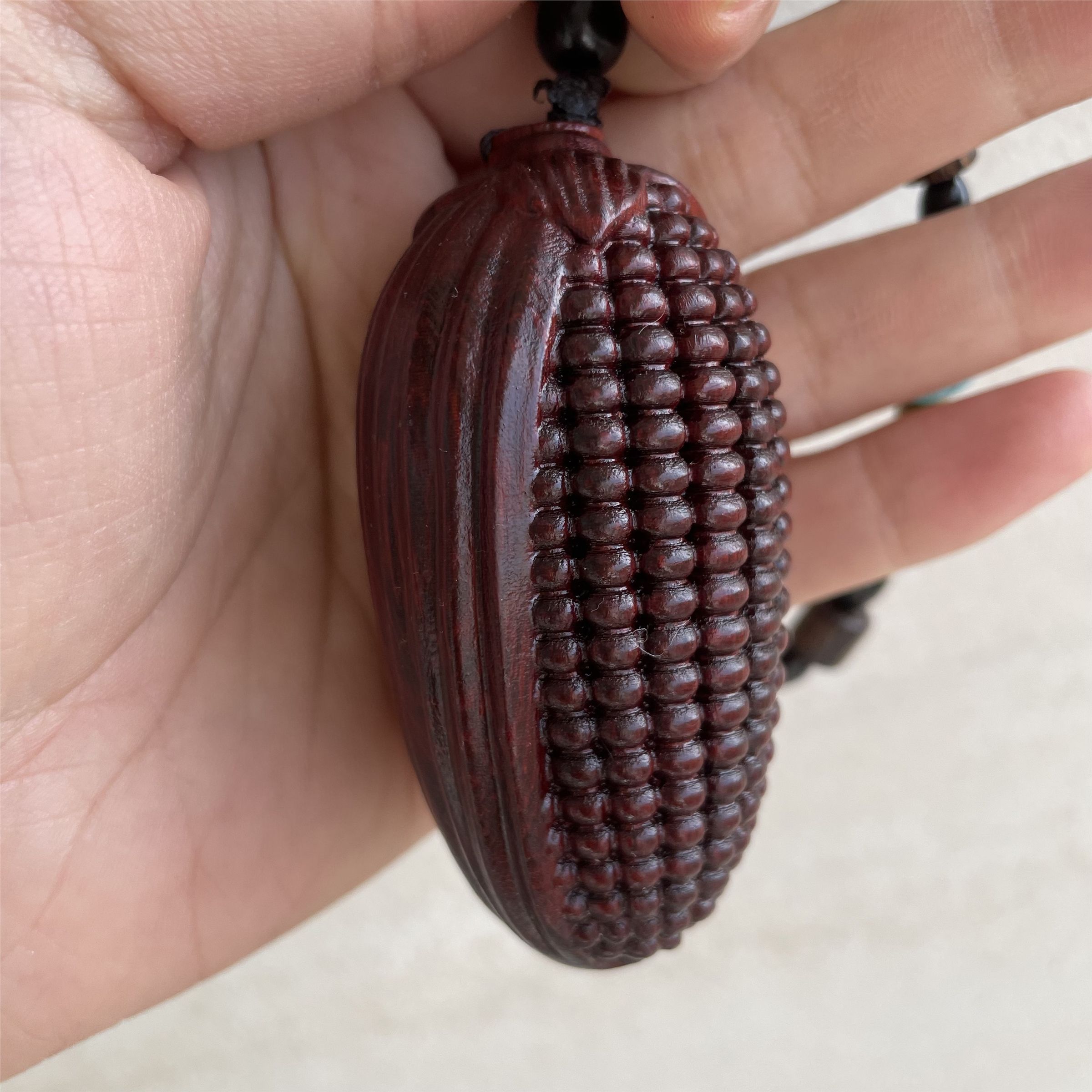 天然小叶紫檀雕刻玉米手把件金玉满堂檀木挂绳把玩件手工木雕挂件 - 佛珠侠