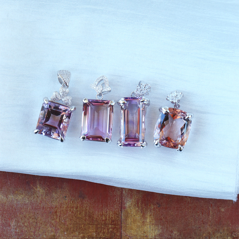 天然紫黄晶纯银镶嵌吊坠戒指 紫黄同体 女款彩宝水晶吊坠饰品 - 怡庆楼朱砂水晶批发