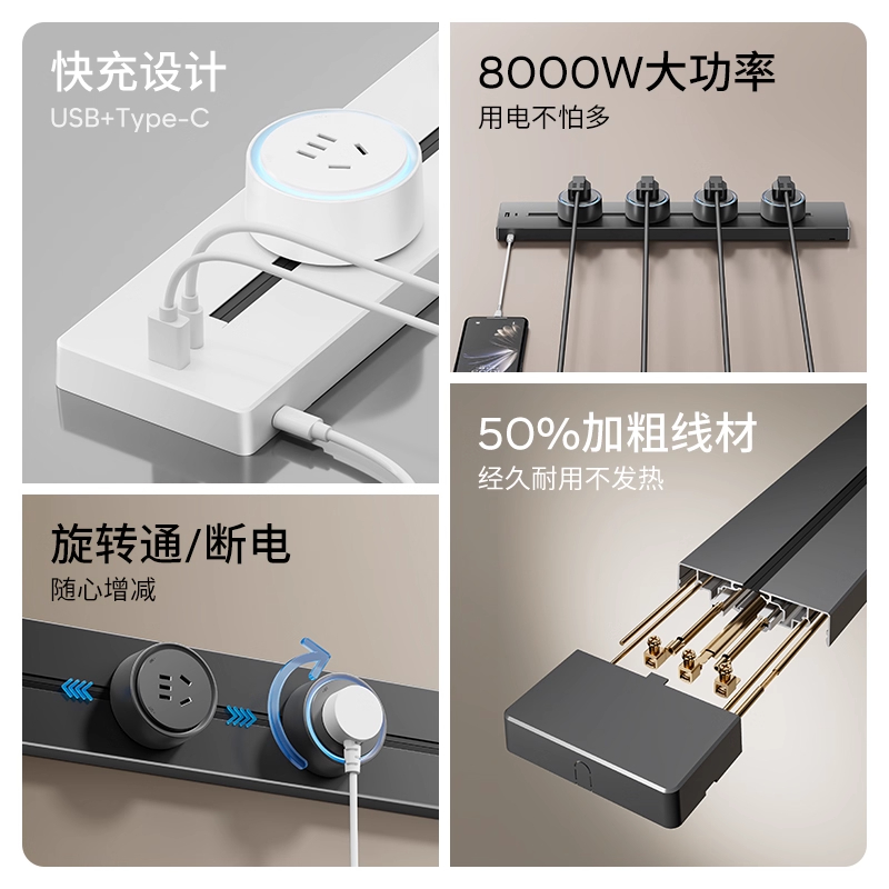 您的位置:他他商城  >   >  可移动滑动轨道插座明装usb带Type-C滑轨插排家用厨房餐边柜导轨
