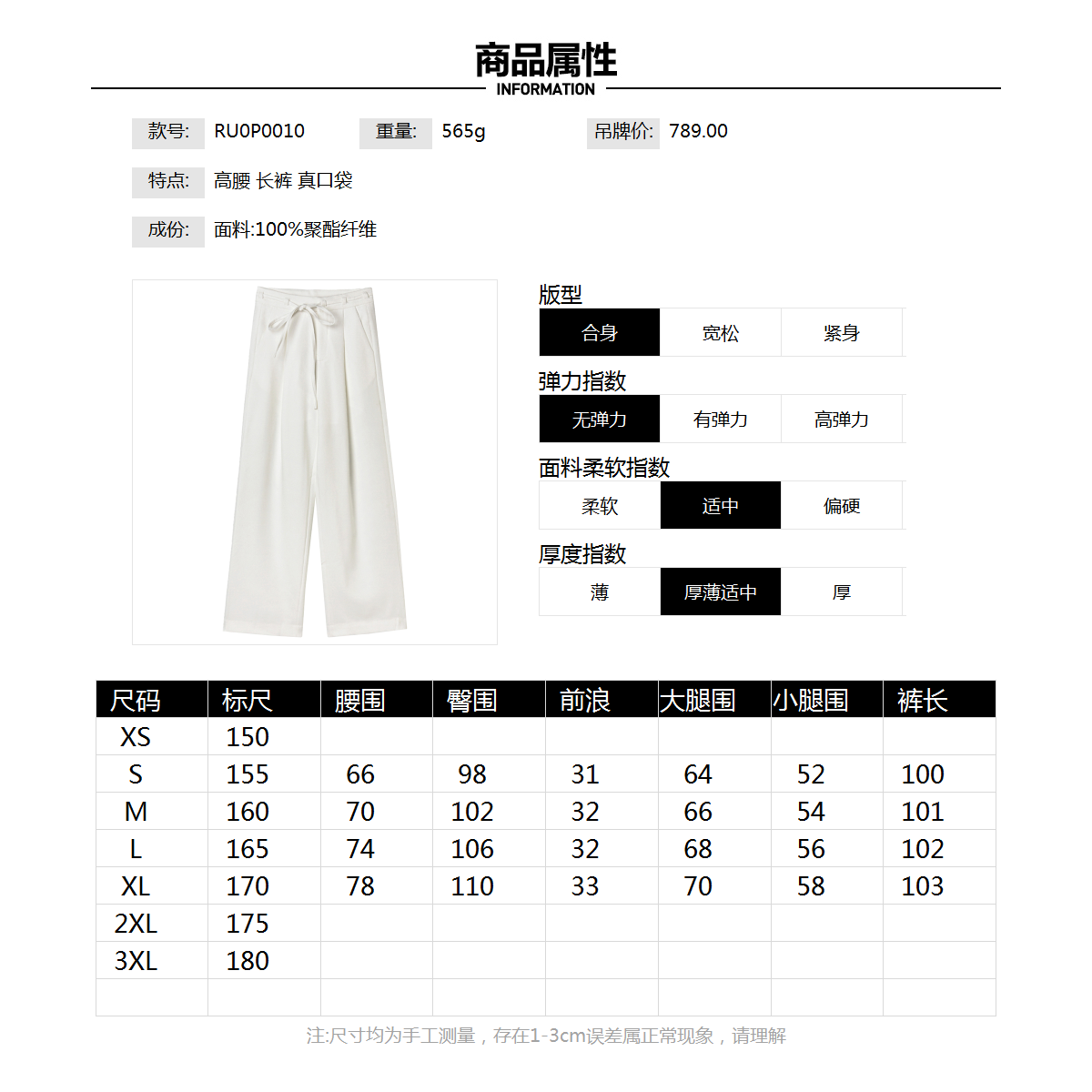2025年秋Outlets正品 高端RU系列系腰带长裤梨型显瘦百搭休闲裤女 - 奥特莱斯品牌服饰折扣店