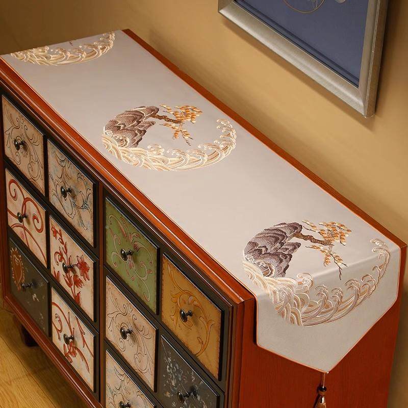 桌SM旗中式新式轻奢高中端茶布装茶桌布餐饰桌电视柜垫布几床旗 - 课棒哄生活用品馆03