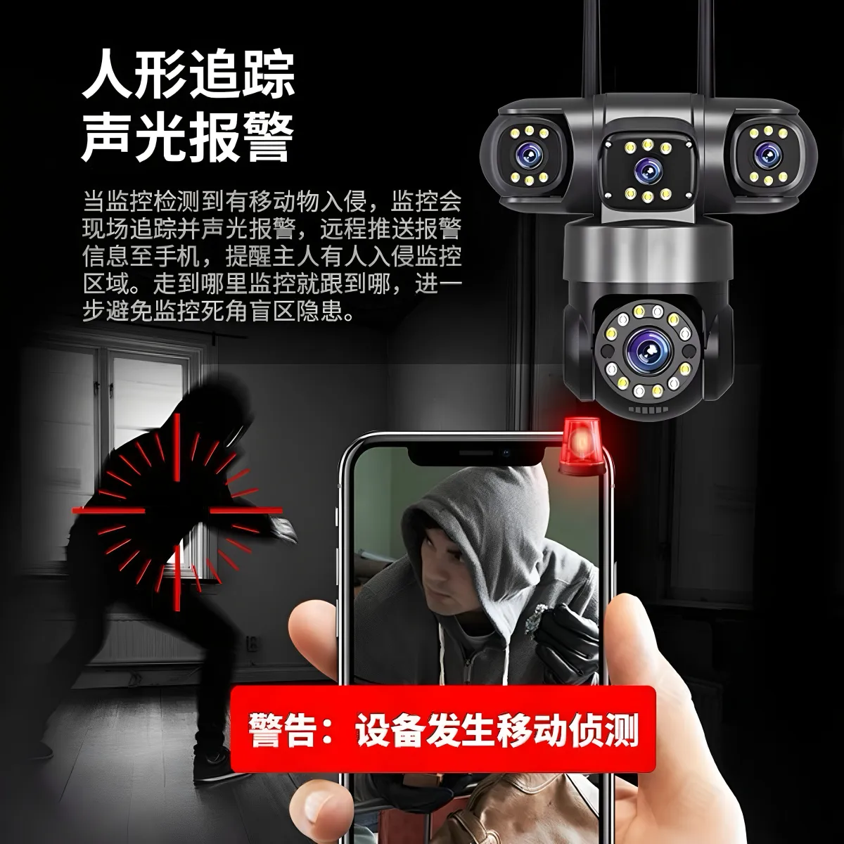 睿博士四画面家用室外远程WIFI监控摄像头4G无需充值超高清监控器