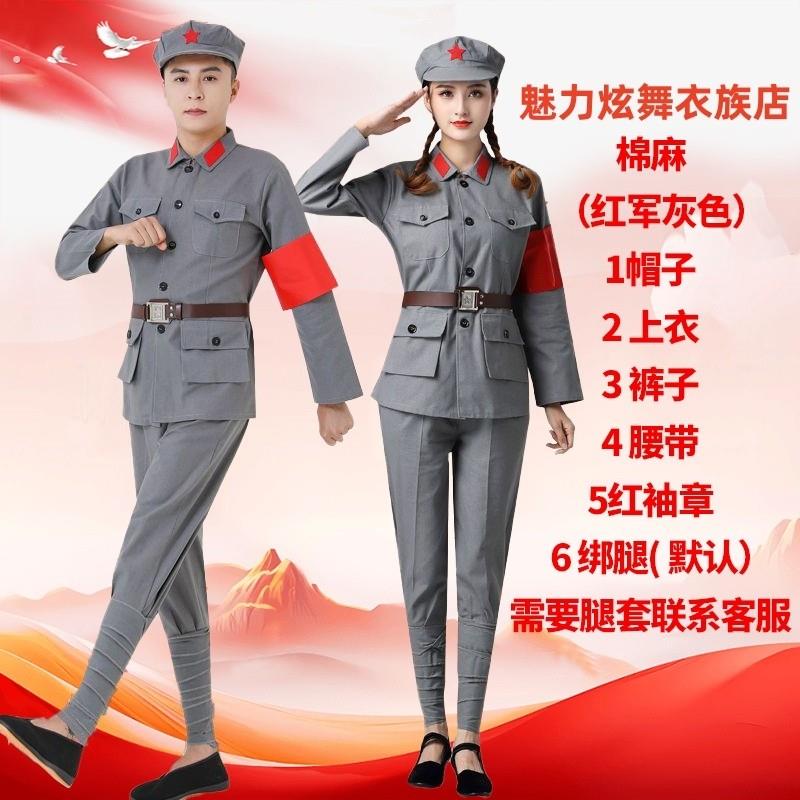 棉麻红军演出服八路军舞蹈服成人新四军抗战表演服男女套装舞台装