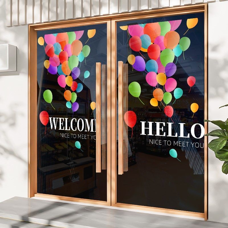美容院养生馆玻璃门贴纸理疗馆店铺装饰品布置气球橱窗静电贴画纸