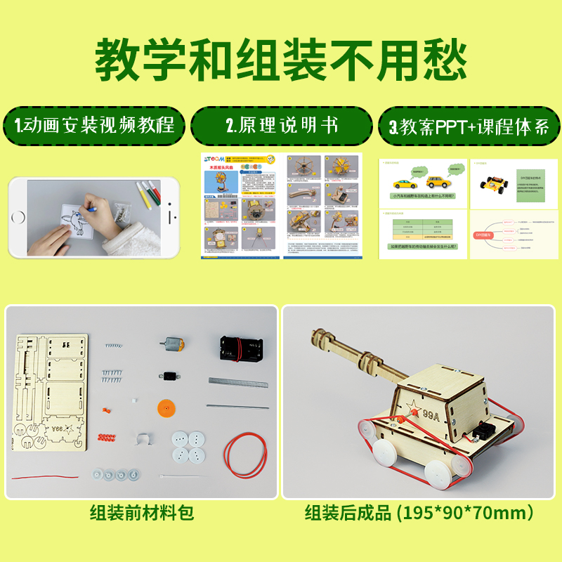 科技小制作发明手工坦克模型diy材料包作品教具儿童益智拼装玩具 - 科学实验工厂