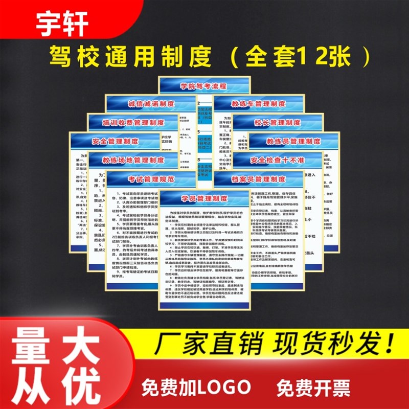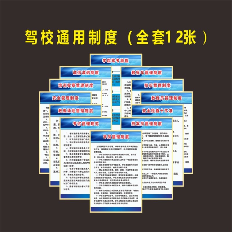 您的位置:他他商城  >  文体  >  驾校管理规章制度牌安全管理上墙制度学员教练员R结业考核管理墙