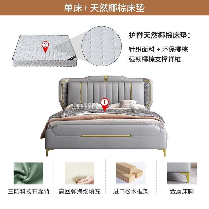 皮床现代简约轻奢1.8m单双人床储D物软包主卧实木科技布艺1.5m床 - 星荷楼日用品
