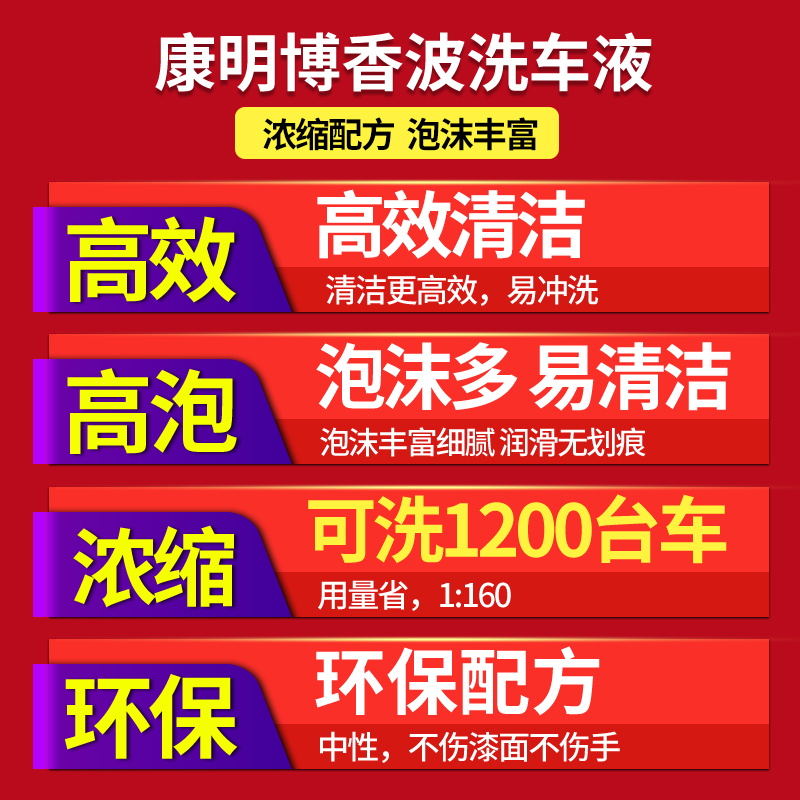 您的位置:他他商城  >   >  康明博洗车液水蜡香型浓缩泡沫丰富去污清洁上光洗车店专用20L装