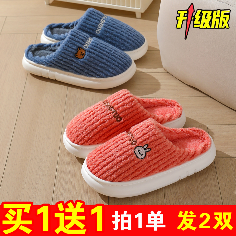买一送一棉拖鞋女士2025新款秋冬季室内居家防滑厚底毛拖鞋男家用 - 团购批发精品室内居家鞋