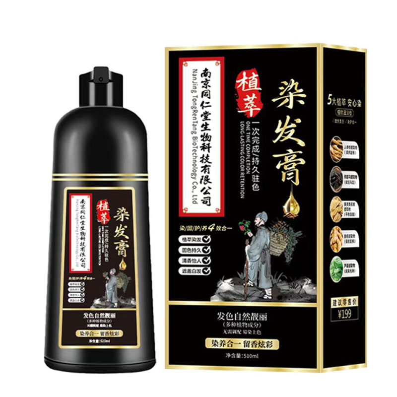 正品南京同仁堂植萃染发膏植物染发剂泡泡染一洗黑覆盖白发510ml